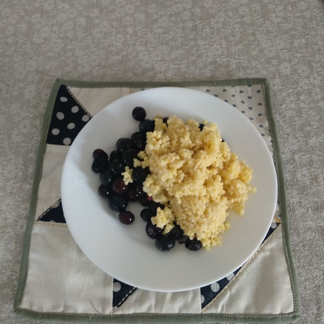 Pequeno Almoço: Каша Пшенная, Черника. mais...