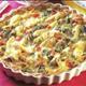 Uma quiche saborosa de atum, alho francês, pimentos, cenoura.